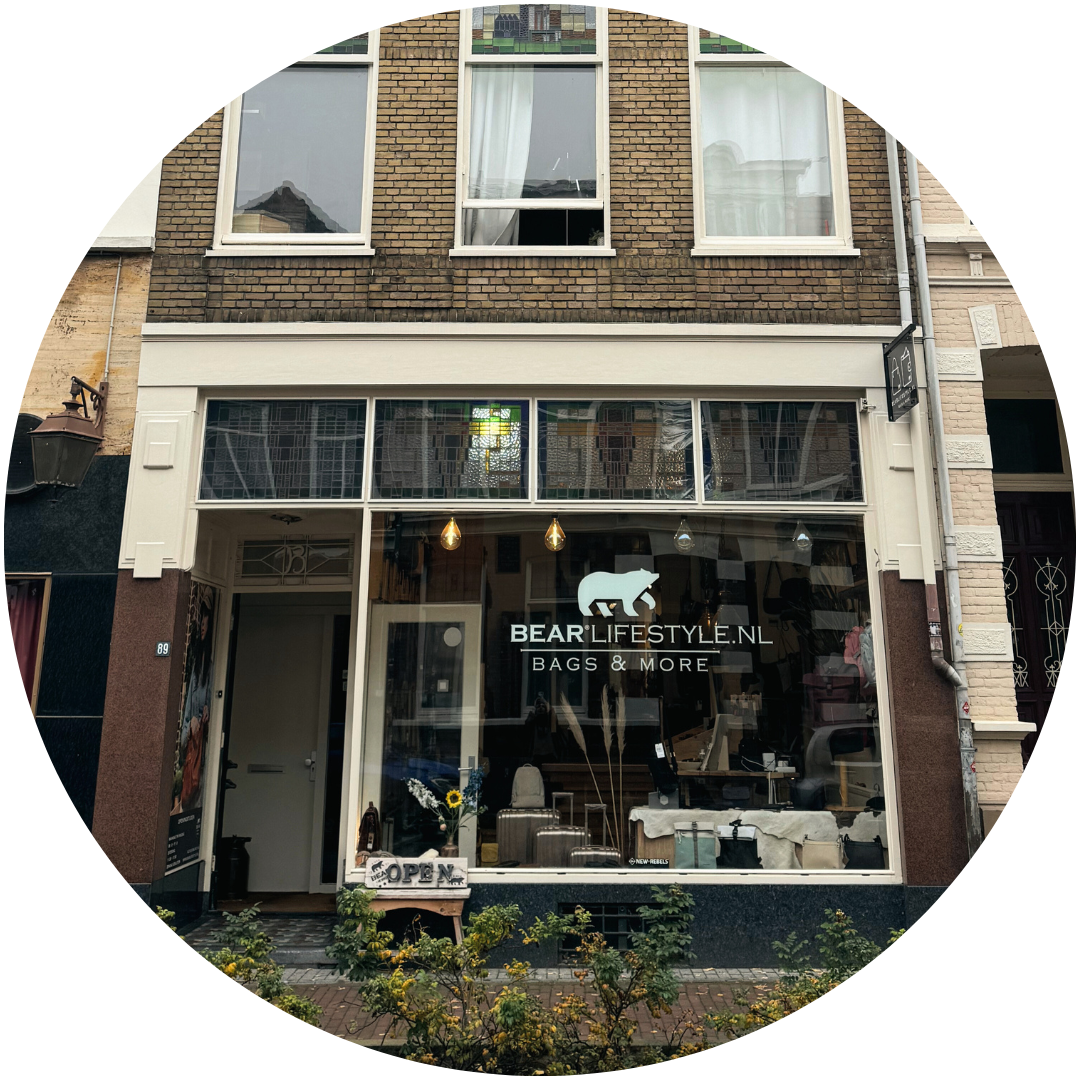 Our home base since 2015 with over 120m² of Bear bags and wallets. You will find our head office at the back of our store. Customer service, webshop, etc. are run from here.